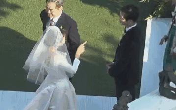 婚禮在室外舉行,氣溫較低且沒有陽光,宋慧喬的婚紗很單薄,新郎宋仲基一直握著新娘的手,不時搓手取暖,嫁給愛情的樣子超甜~